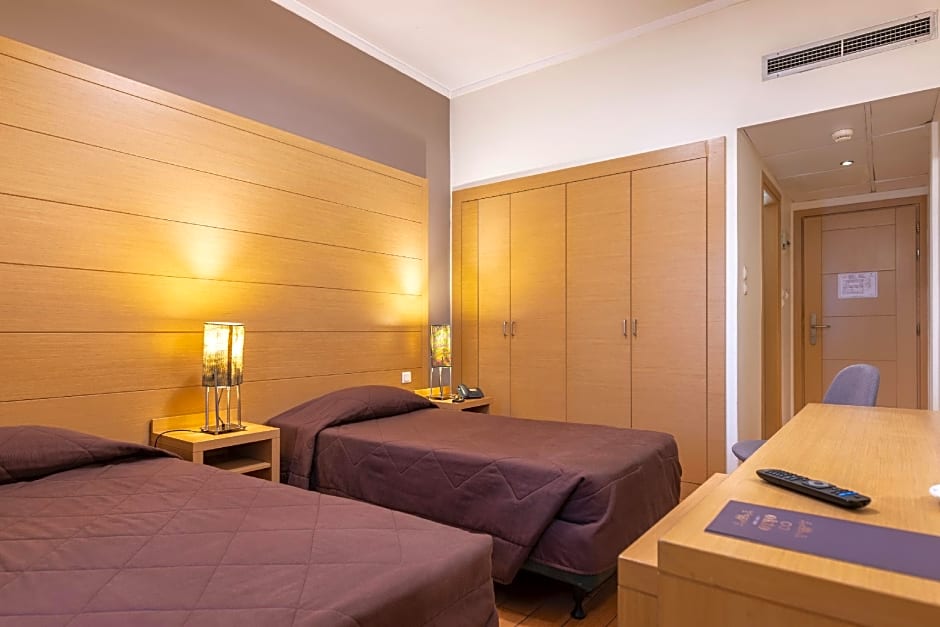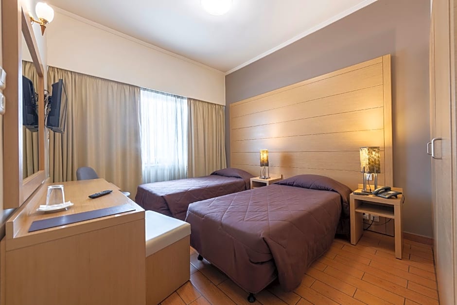This air-conditioned twin room is consisted of of a flat-screen TV with satellite channels, a private bathroom as well as a balcony with city views. The unit has 2 beds.